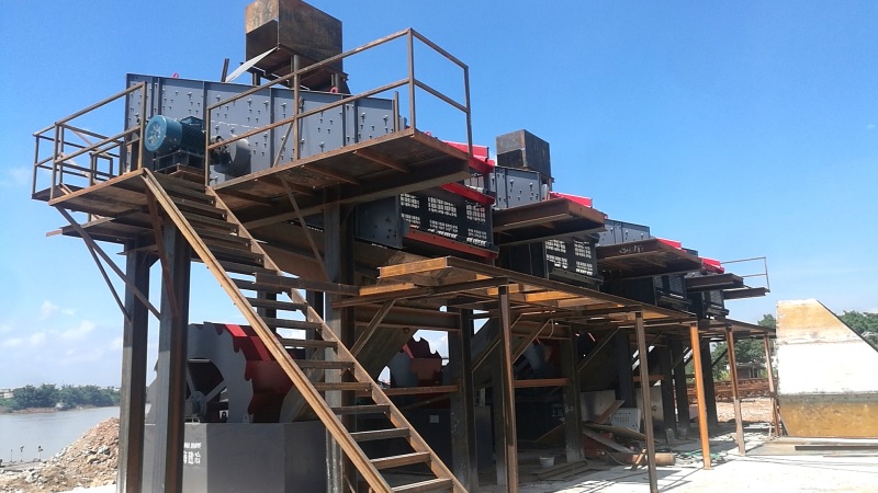 This project is a sand making production line with an hourly output of 200 tons. The equipment used includes vibrating feeder, single cylinder cone crusher, multi-cylinder cone crusher, sand making machine, 4 vibrating screens, 4 sand washing machines and sand recovery&dehydration integrated machine.